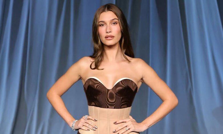 Η Hailey Bieber επέλεξε ένα look απευθείας από το ss show υψηλής ραπτικής του οίκου Schiaparelli για το 2026. Το φόρεμά της αγκάλιαζε τη σιλουέτα της, χάρη στον κορσέ που είχε, δημιουργώντας την οπτική ψευδαίσθηση ότι το υπόλοιπο φόρεμα, σε απόχρωση εσπρέσο, ήταν στην πραγματικότητα ένας συνδυασμός φούστας και strapless bustier.