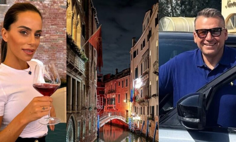 Στις αναρτήσεις της Μαρίας Αντωνά διακρίνονται γραφικές γόνδολες, στενά σοκάκια και στιγμές χαλάρωσης, με το ζευγάρι να απολαμβάνει την ιδιαίτερη ατμόσφαιρα της «πόλης των καναλιών».