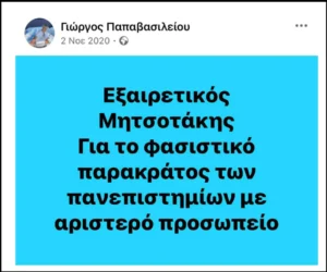 «Εξαιρετικός Μητσοτάκης για το φασιστικό παρακράτος των πανεπιστημίων με αριστερό προσωπείο».