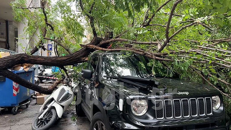 Εμμ. Μπενάκη: Δέντρο έπεσε πάνω σε διερχόμενο αναβάτη μηχανής και σε αυτοκίνητο