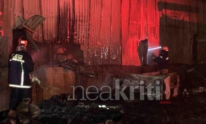 Ηράκλειο: Στις φλόγες αποθήκη με τρόφιμα και χαρτικά είδη