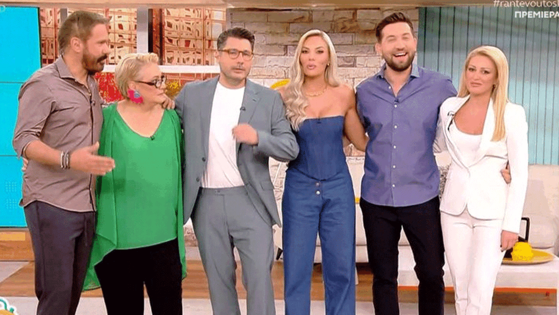 Στη συνέχεια οι δυο παρουσιαστές καλωσόρισαν στο πλατό τους συνεργάτες τους, Γιώργο Σκρομπόλα, Αλεξάνδρα Τσόλκα, Κωνσταντίνο Αρτσίτα και Βάσω Μητρομάρα.