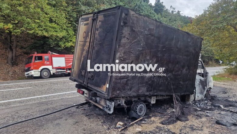Συναγερμός σήμανε λίγο πριν τη μια το μεσημέρι της Δευτέρας στο 10ο χιλιόμετρο Θερμοπυλών – Ιτέας, όταν φορτηγό κλειστού τύπου, χωρίς φορτίο, τυλίχθηκε ξαφνικά στις φλόγες από άγνωστη μέχρι στιγμής αιτία.