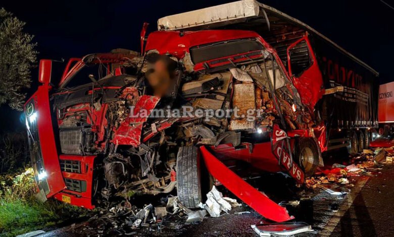 Φοβερό τροχαίο με σφοδρή σύγκρουση δύο νταλικών και την εμπλοκή ενός ακόμη ΙΧΕ, σημειώθηκε λίγο μετά τις 6 το απόγευμα της Δευτέρας (8/12), στην Παλαιά Εθνική οδό Λαμίας – Αθηνών, έξω από την Αμφίκλεια και πριν την Κάτω Τιθορέα.