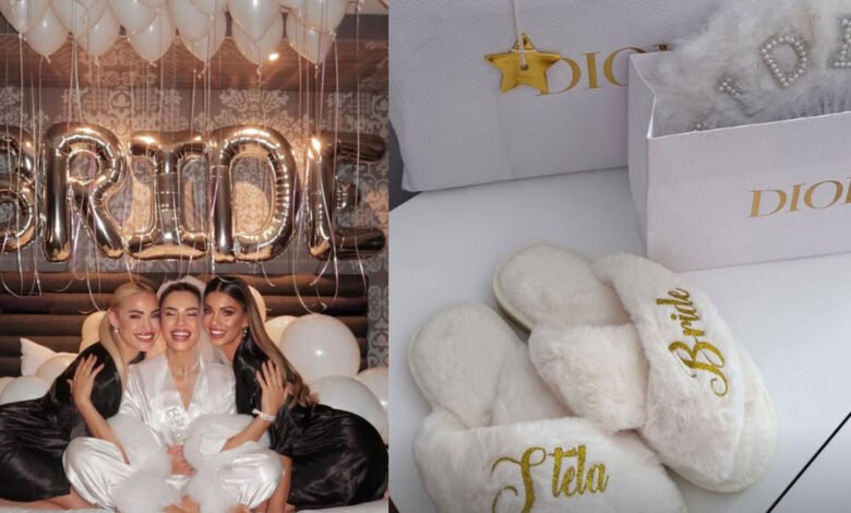 Στη συνέχεια είδαμε μέσα από τον λογαριασμό της Στέλλας Πάσσαρη τα δώρα που ετοίμασε για την κουμπάρα της και τις φίλες της. Κι αυτά είναι όπως μπορείτε να δείτε: παντοφλάκια και κρεμάστρες με τα ονόματα των κοριτσιών. Όλα προσεγμένα μέχρι την παραμικρή λεπτομέρεια.