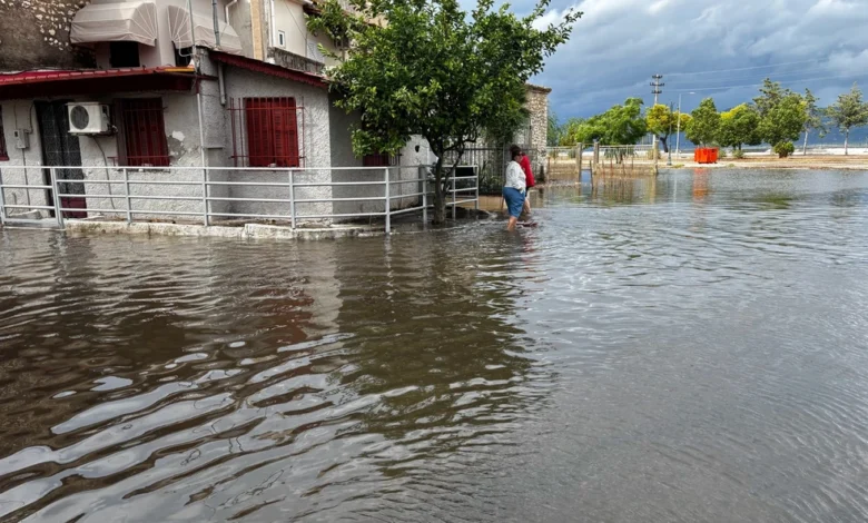 «Ποτάμια» οι δρόμοι στο Αιτωλικό από τη βροχή