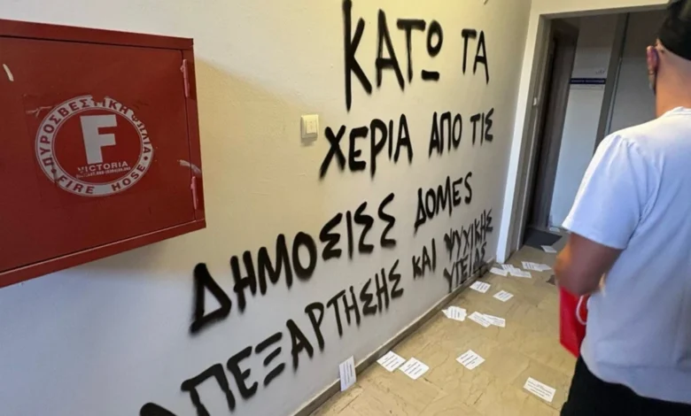 Τρία άτομα ταυτοποιήθηκαν από την αστυνομία για την αναγραφή συνθημάτων με μπογιές στο πολιτικό γραφείο του υφυπουργού Υγείας και βουλευτή της Ν.Δ. Δημήτρη Βαρτζόπουλου, τον περασμένο Ιούλιο, στο κέντρο της Θεσσαλονίκης.