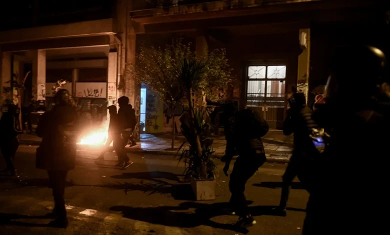 Οι άγνωστοι επιτέθηκαν στους αστυνομικούς εκτοξεύοντας μολότοφ, πέτρες και ξύλα, προκαλώντας ένταση και ζημιές.