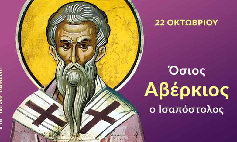 Read More »ΘΡΗΣΚΕΙΑ / Τετάρτη 22 Οκτωβρίου 2025, 06:03 / Συν 1 Ο Όσιος Αβέρκιος έζησε στα τέλη του 2ου αιώνα μ.Χ.…